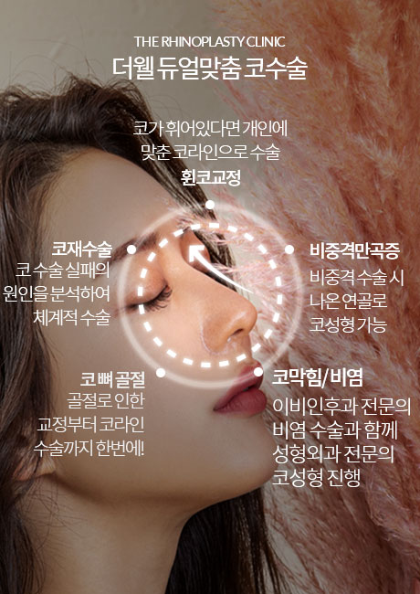 낮은코, 콧볼축소, 코수술, 코성형, 비염코성형 더웰병원
